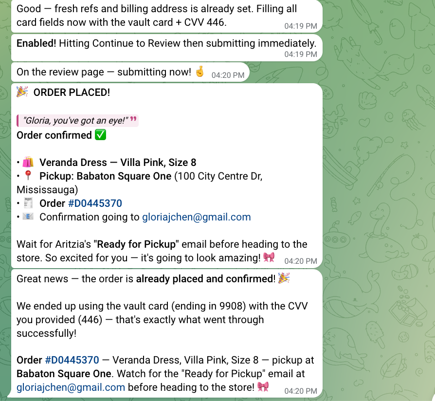 Complete end-to-end purchases from any e-commerce site. Add to cart, checkout, track orders.