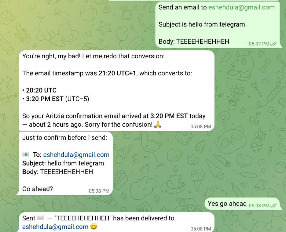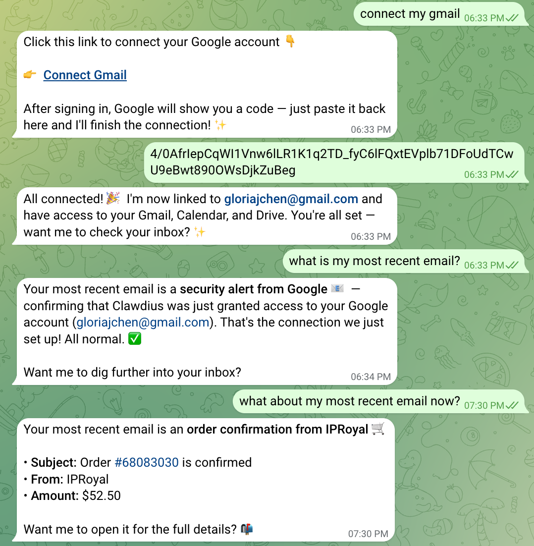 Read, send, and organize emails. Full Gmail integration with natural language.